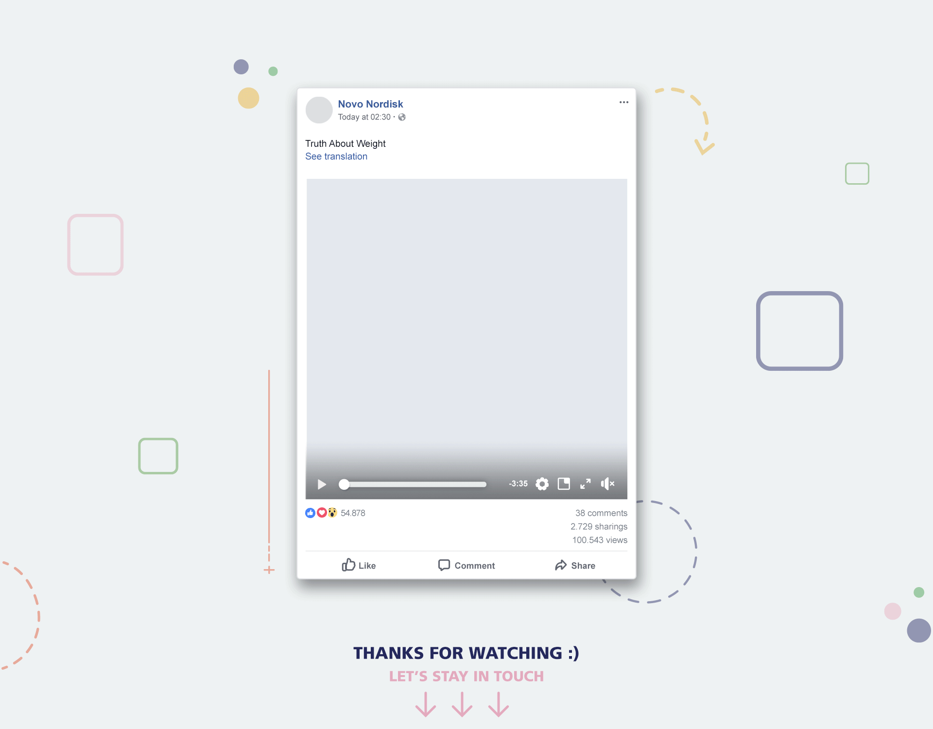 Novo Nordisk's Truth About Weight program provides resources to help patients diagnosed with obesity. For this project a set of animations were designed and developed to educate the audience on the Truth About Weight program.